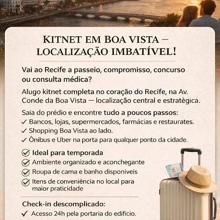 Self-catering facilities include a full kitchen. Excelente Studio No Coracao Da Boa Vista is a 15-minute drive from Guararapes airport.